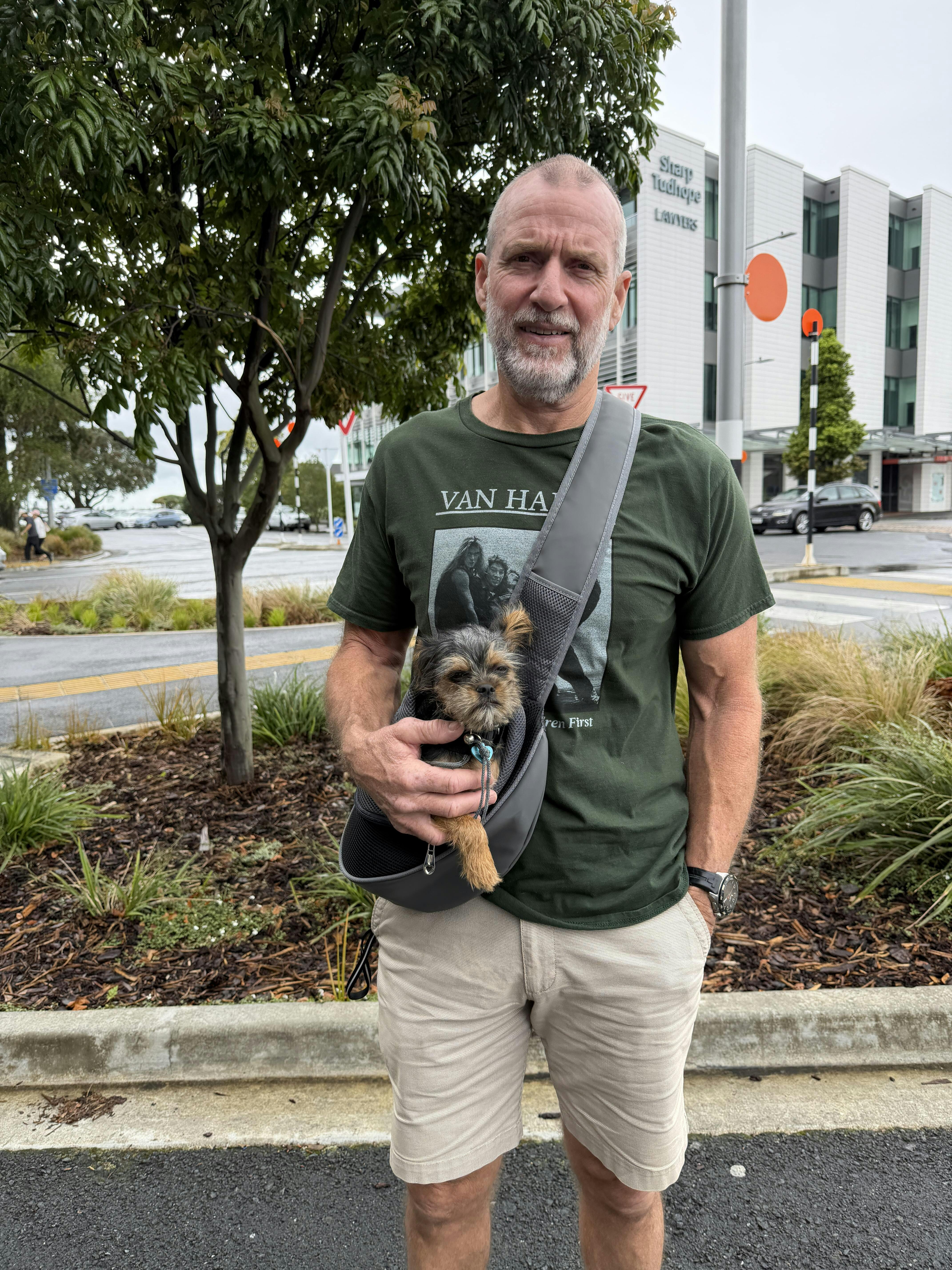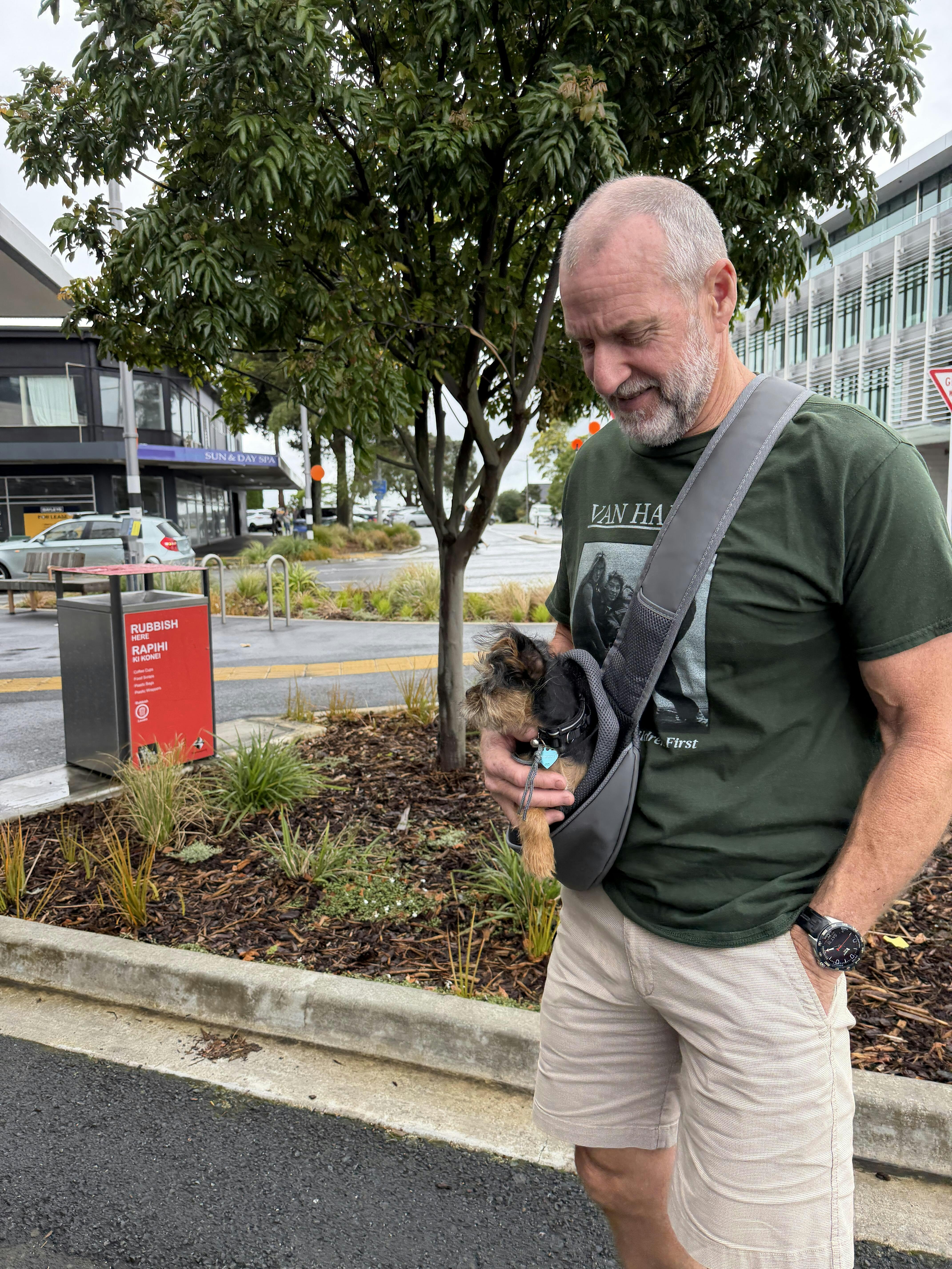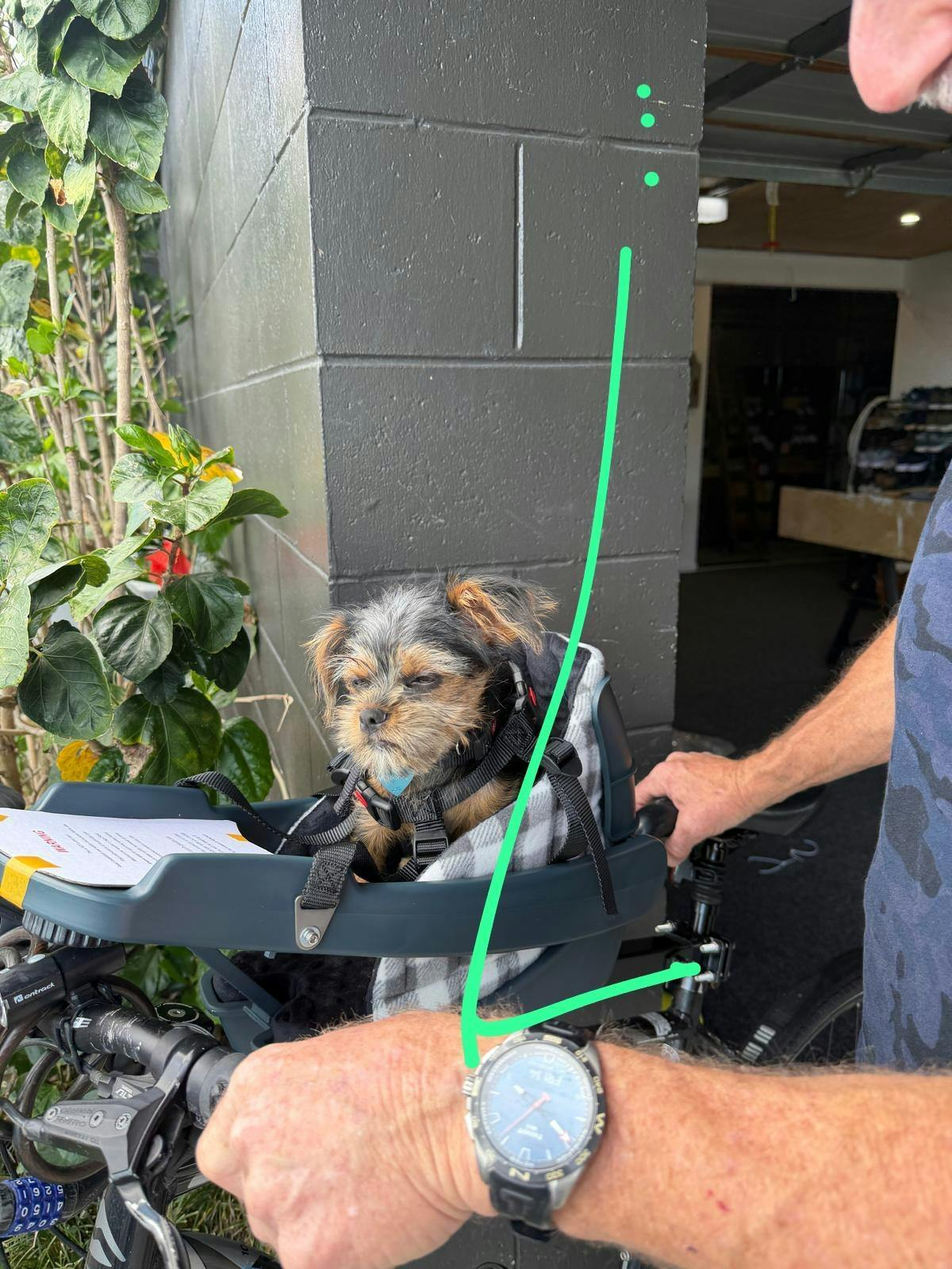That is the only issue he’s had so far with using it. We wanted to have the dog in front of us and we didn’t want to have it on the wheel to avoid compromising steering / balance etc so this seems to be the only way to do it and a compromise you have to make to have your puppy close to you facing forwards like this. The puppy seem to enjoy it once he got used to it.