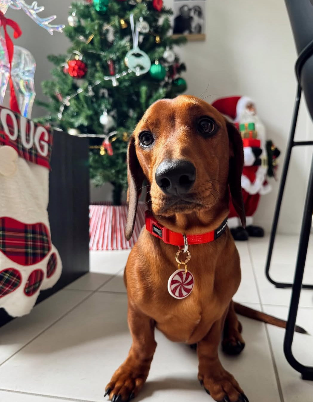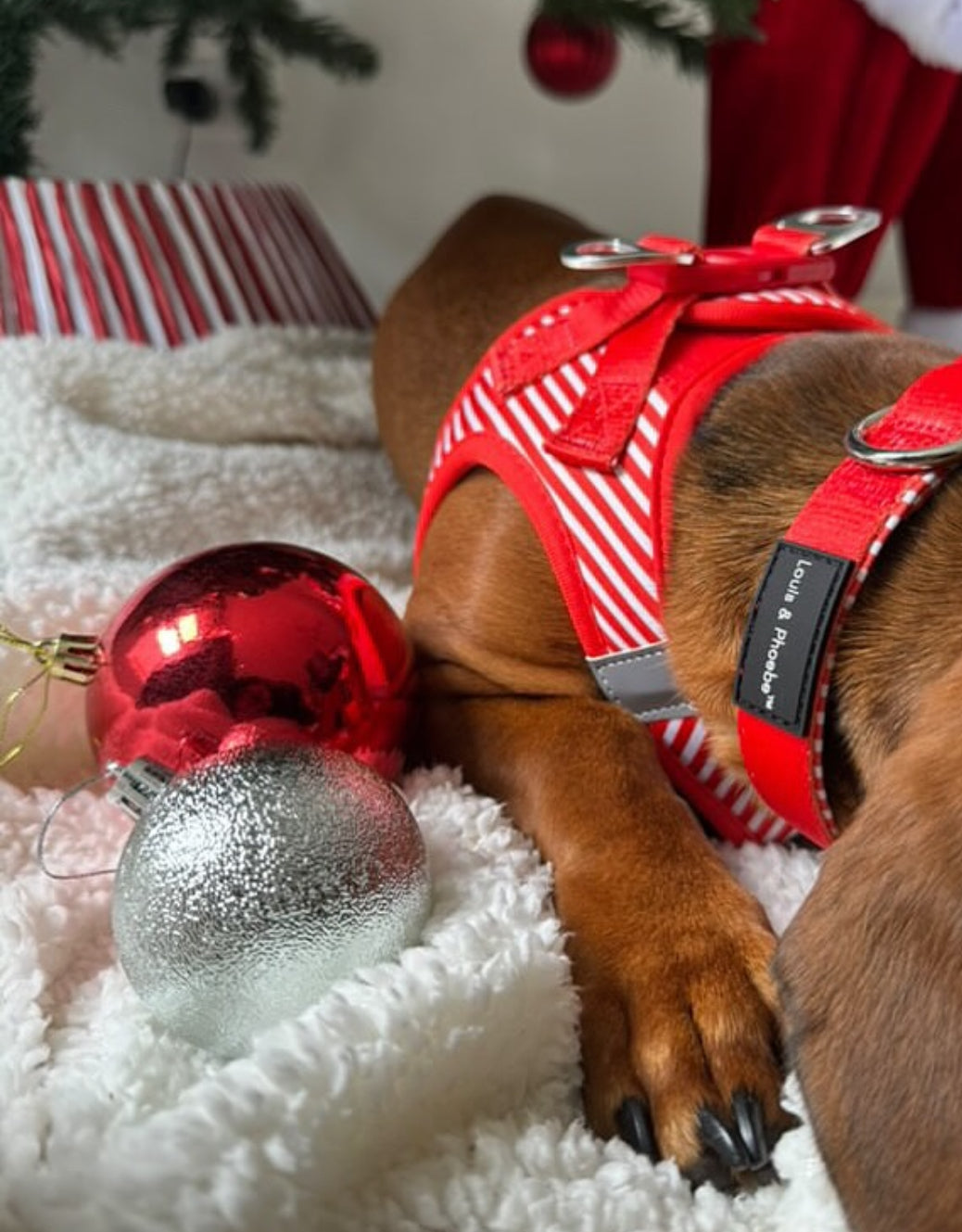 Elevate your pup's style with the Candy Striped Red Dog Collar from Louis and Phoebe, designed to coordinate perfectly with our harness and leash. This collar combines fashion with function, featuring our iconic candy-stripe pattern with a soft Neoprene lining and durable pink nylon exterior. The thoughtful design ensures comfort against your dog's neck while maintaining a secure fit. Practical yet fashionable, it's machine washable for hassle-free maintenance. Whether for daily walks or special occasions, this vibrant collar adds the perfect finishing touch to your furry friend's ensemble.